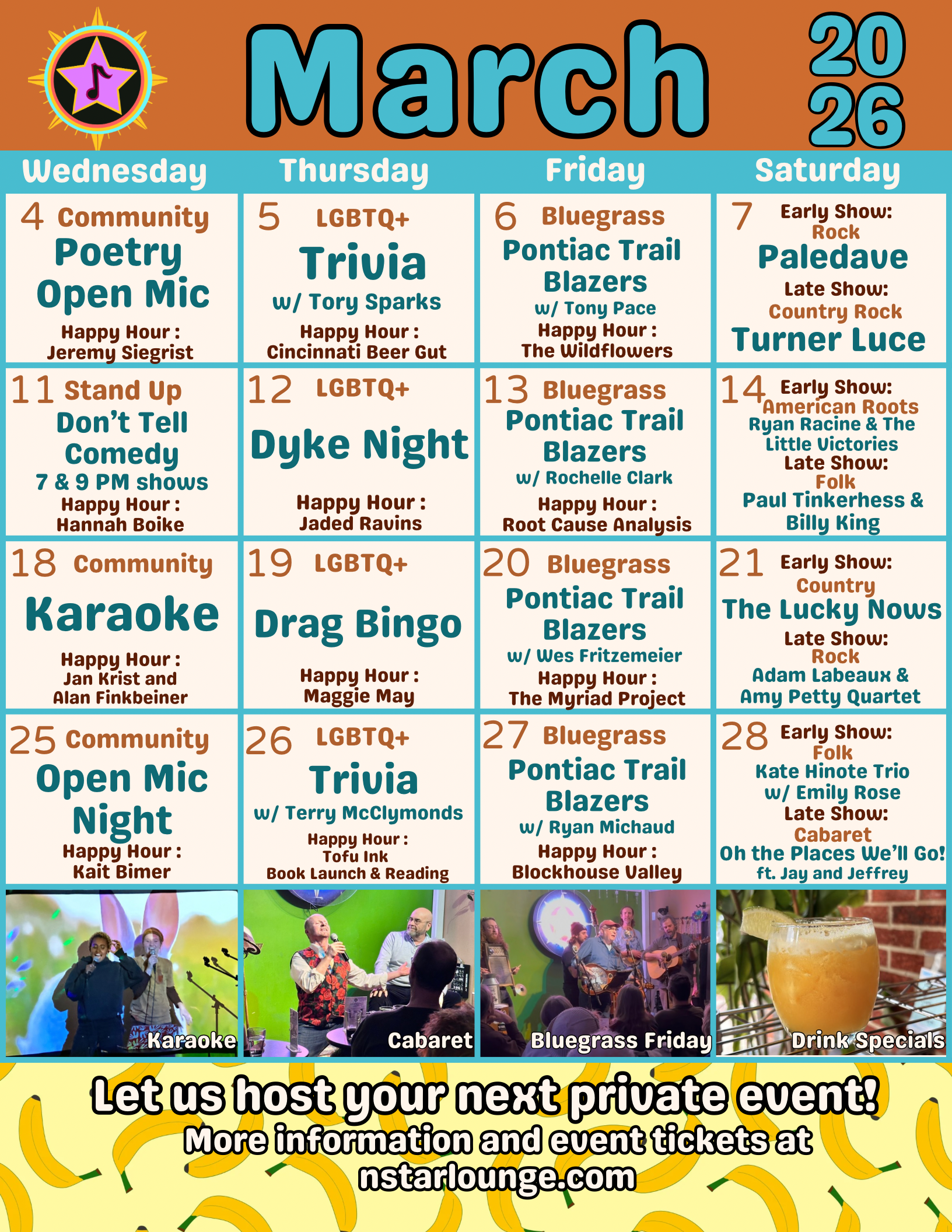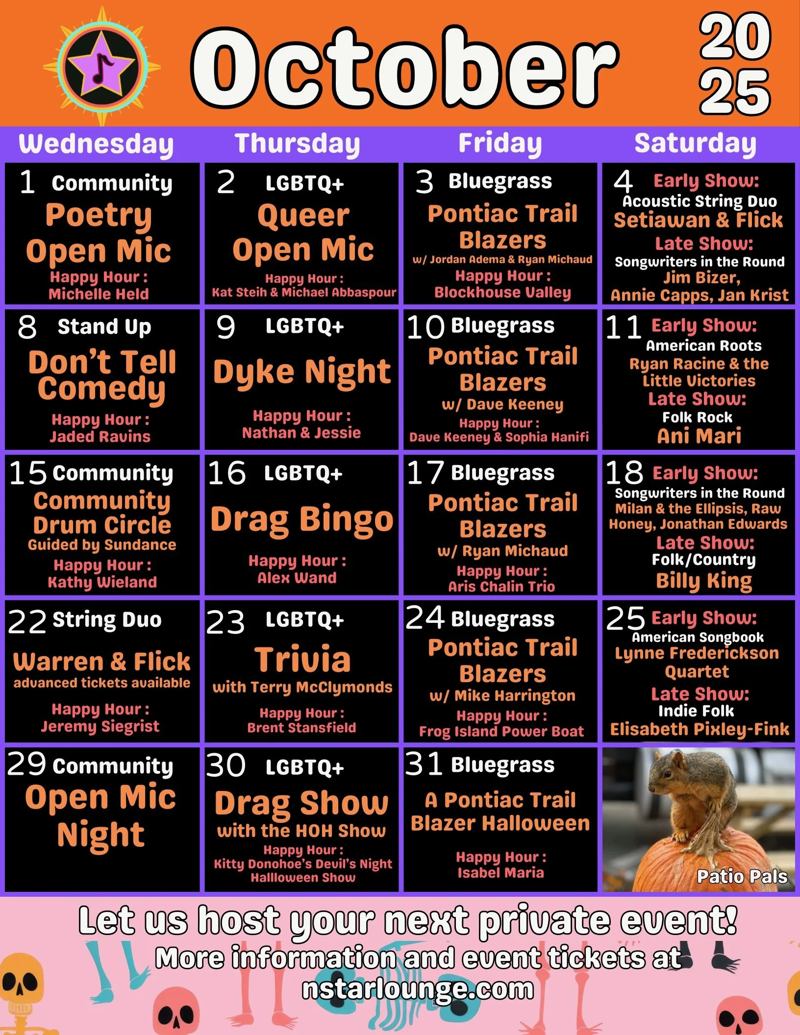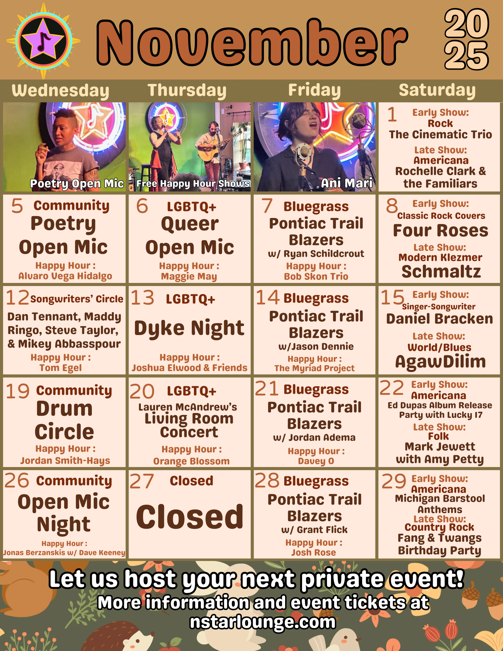 The North Star Lounge is an intimate music venue and vegan bar, brought to you by the folks at Detroit Street Filling Station and The Lunch Room.