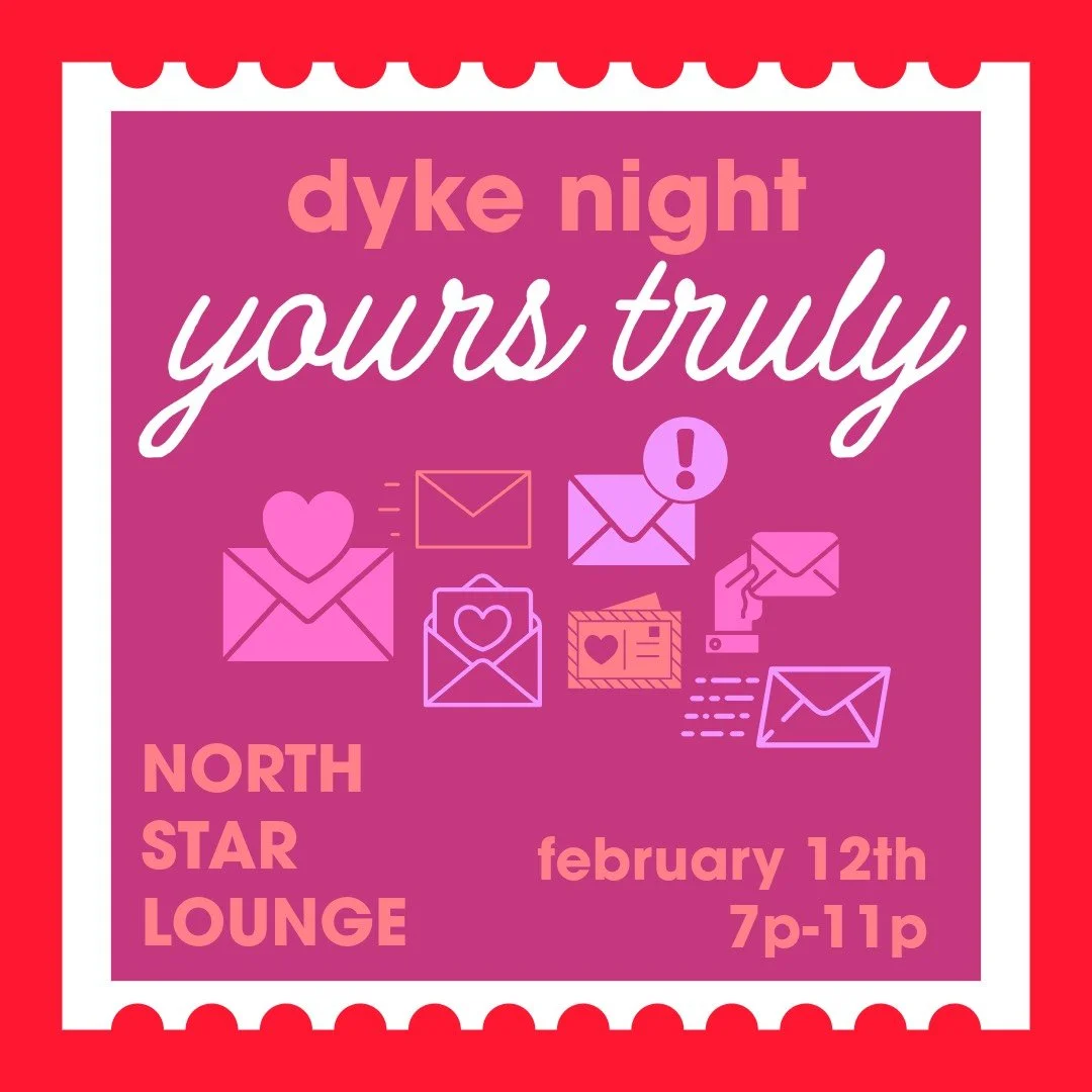Dyke Nights are monthly gatherings for queer babes to meet up, dance, and flirt at North Star Lounge✨🌈 This is a trans and non-binary inclusive space!