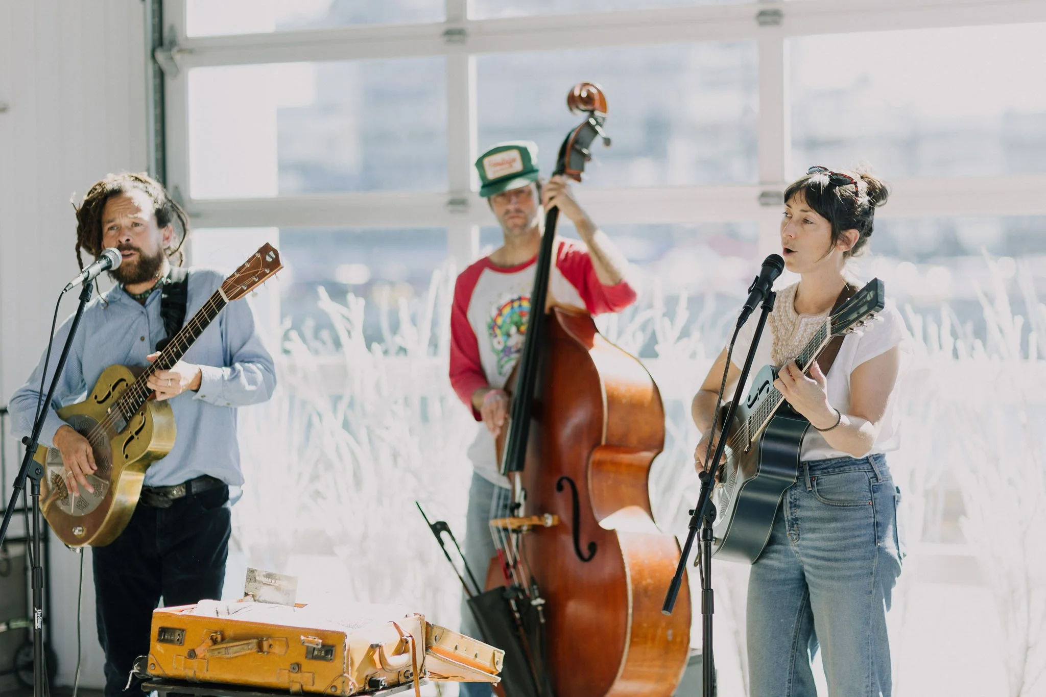 Nathan Rivera & Jessie Andra Smith travel the world playing original songs on their resonator guitars, accordion and more. Singing songs inspired by home and by their travels, their shows are full of musicianship, fun stories, interplay between the male and female vocals in English, Spanish, and French. They are accompanied by Trevor Mulvey on the upright bass.