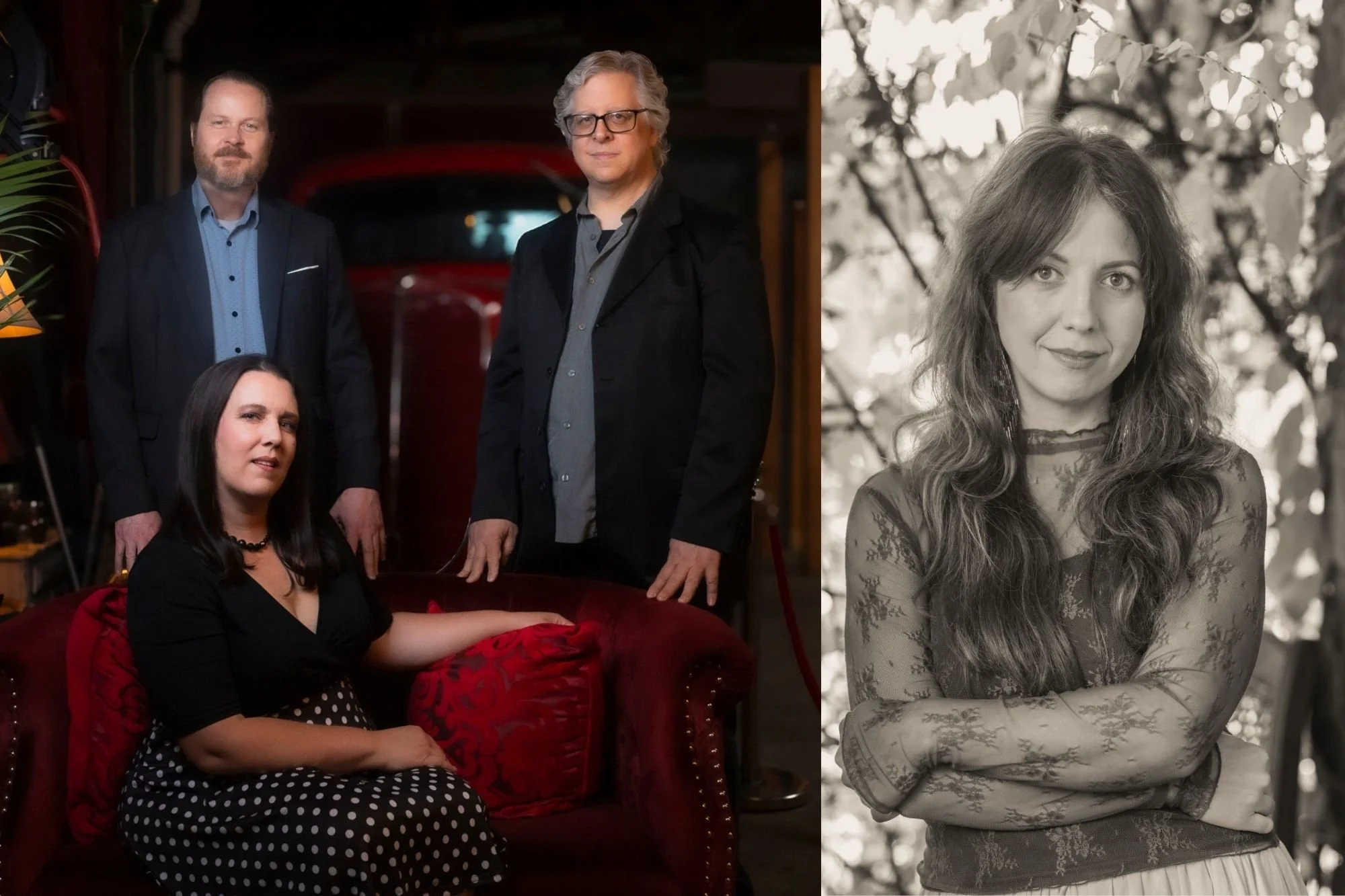 The Kate Hinote Trio is a Detroit-based contemporary folk ensemble rooted in storytelling, rich melodies, and an unmistakable chemistry between its members. Led by vocalist and songwriter Kate Hinote, the trio features guitarist David Johnson (her longtime bandmate from The Blueflowers) and violinist Matthew Parmenter (of art-rock band Discipline). Together, they create an acoustic sound that is both finely crafted and refreshingly human, blurring the lines between folk, chamber pop, and indie songcraft. Their second album, Stowaways (released June 2025), showcases the trio’s evolution with ten original songs that lean into narrative-driven songwriting. The heart of their music lies in the dynamic between Hinote’s clear, expressive vocals and Parmenter’s violin, which often takes on the role of a second voice — playful, tender, or teasing — adding emotional depth and dialogue to every song. Johnson’s warm and intuitive guitar work anchors the arrangements, giving each story the space it needs to unfold. Over the past five years, the trio has brought their music to stages across Michigan, Ohio, New York, West Virginia, and Kentucky, including a featured appearance on NPR/PRX’s Red Barn Radio from WEKU in Lexington, KY.